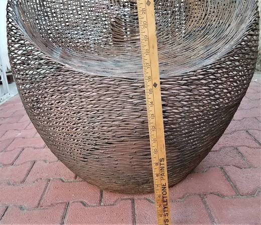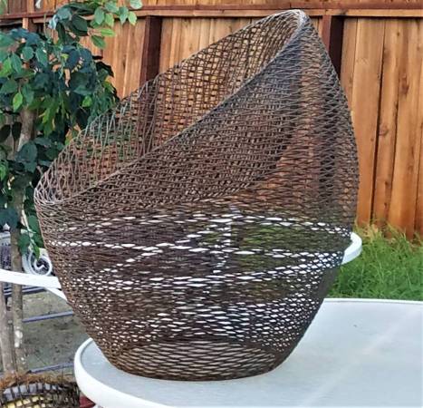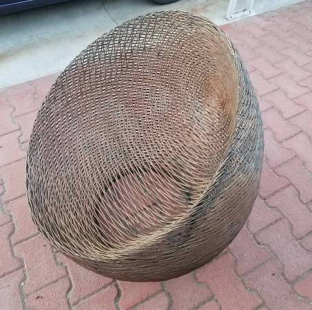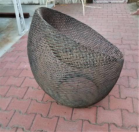 It is very heavy and solid design from thick iron rod strands welded into a wire mesh and formed into a cocoon egg shaped chair.