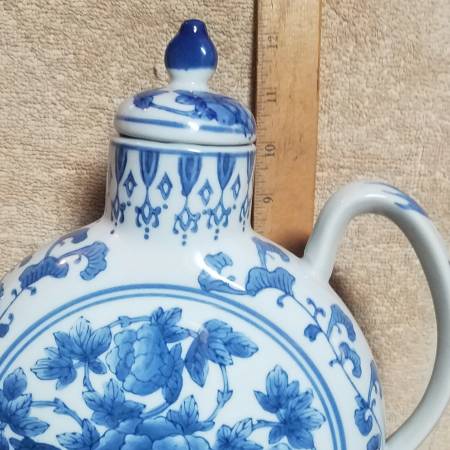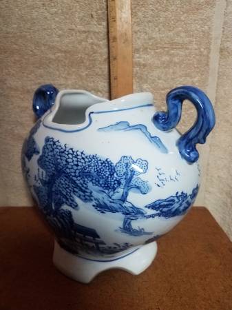 Very nice collection. Chinese Chinoiserie Blue And White Ceramic Footed Vase W/Handles Cutout. 7 3/4” tall x 9” and 4 other items please look at pictures. $240 for all 5 items. Please call. Marc