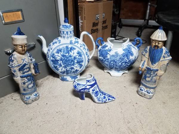 Oriental blue and white ceramic 5 item collection - collectibles -...