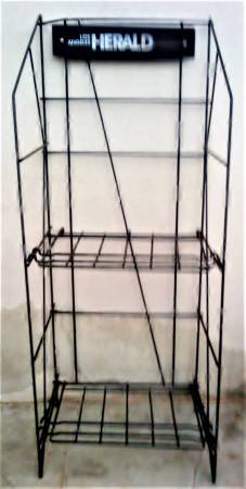 Rare hard to find Los Angeles Herald Examiner newspaper display stand. This stand was used while the company was still in business. It would have been used at a Circle K , 7/11, a hotel or anywhere the newspaper was being sold. The Herald Examiner was in business for over 100 years and went out of business in 1989.