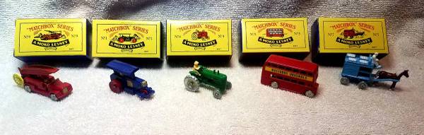 Vintage Moko Lesney Matchbox Originals Set of 5 In Display case. new condition. Buy one toy or the whole set or more. Please call Marc