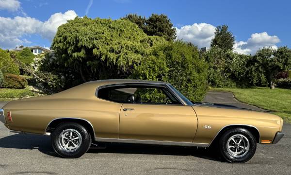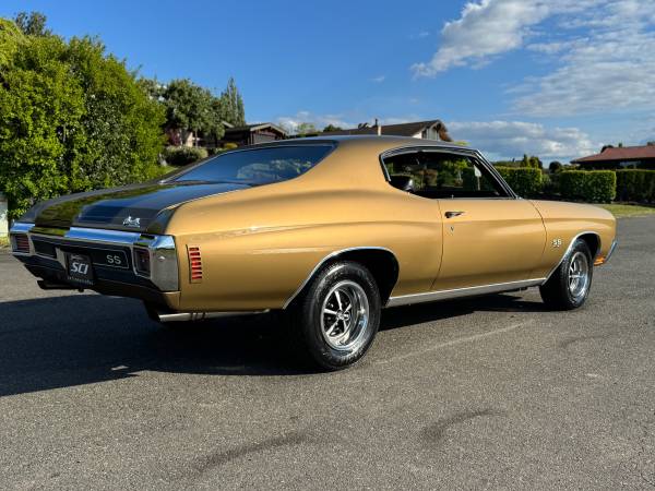 Get ready to own the streets with this legendary 1970 Chevrolet Chevelle Super Sport engine built 3k miles ago 454 with spec's build sheet. Mated to a task ready Muncie 4 speed Transmission with M22 Internals. Dressed to impress in a stunning Autumn Gold Metallic exterior with bold Tuxedo black under clear stripes gracing a laser straight body. Complemented by a Black Non Smokers correct OEM materials interior.