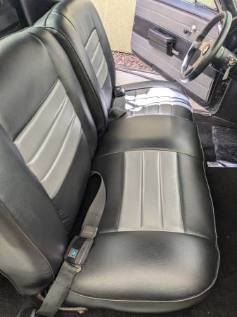New fresh black with grey accented interior, Sony sound system with Bluetooth and tuner, Momo steering wheel, and retains the original AC/Heat vents.