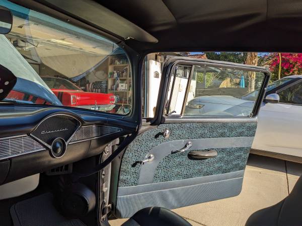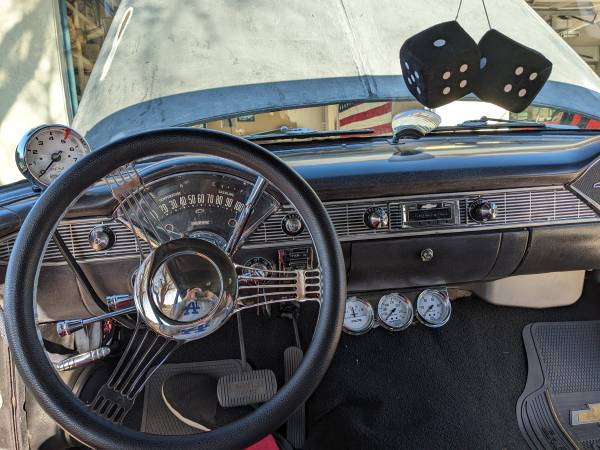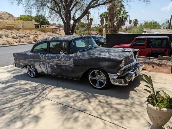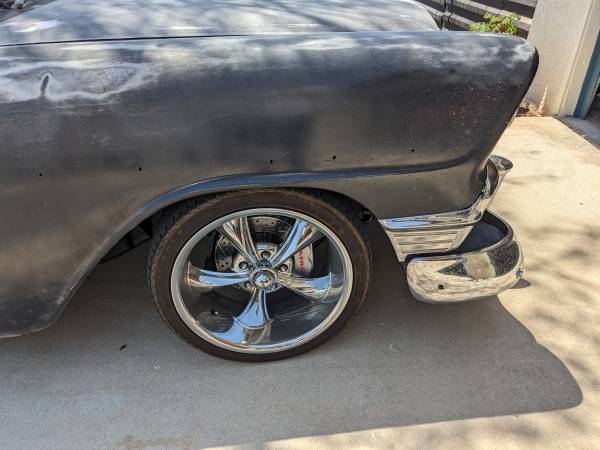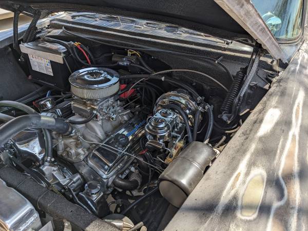 If you're good with body and paint or just like Patina, this might be your next project car. It’s been gone thru mechanically and is ready for next steps. It’s been lowered 4”, sports 18” low profile tires on Riddler mags. Has a solid road feel and drives like a Tri-Five. Frame rails are straight and the under carriage has been sprayed with a shield/protectant coating. 400 watt Alpine powered 4 speaker stereo system and a Kicker sub woofer in the trunk keeps the jams going.