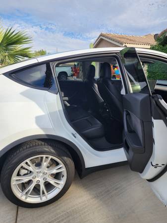 2020 Tesla Model Y Long Range Sport Utility 4D in excellent condition. White exterior with black interior. Low mileage at 35,200. Dual AC electric motors with AWD for optimal performance. Features include: