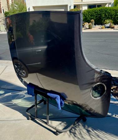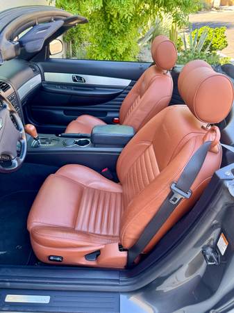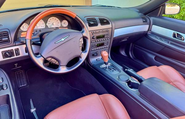 This 2003 Ford Thunderbird is powered by a 3.9-Liter 32 Valve DOHC Aluminum V8 engine rated at 252 horsepower and 267 lb-ft of torque and mated to a five-speed automatic transmission. It is finished in elegant Mountain Shadow Gray over Saddle Leather. The power-folding soft top opens in mere seconds for top-down motoring, and the tonneau cover installs in a snap to present a finished look. For a more formal appearance, you can install the optional hardtop. The vehicle features a 4-wheel independent suspension, traction control, and 4-wheel ventilated disc brakes w/ABS. The interior presents dual heated and power-adjustable leather seats, driver and passenger front and side airbags, and Ford's Audiophile Sound System w/6-disc CD changer. Other features include dual-zone automatic temperature control, cruise control, a power tilt/telescoping steering column, shift knob and steering wheel finished in matching Saddle Leather, 17 chrome cast aluminum wheels shod with Michelin Pilot Sport A/S 3 tires, and a perimeter anti-theft system. The hardtop comes with a handy wheeled caddie for convenient storage.
