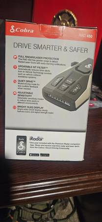 New in box Cobra 450 police radar used 1 time round trip to Florida. No speeding tickets lol
