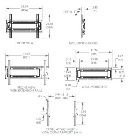 OMNIMOUNT XL HEAVY DUTY DOUBLE STUD WALL MOUNT "TILT" BRACKET (100x100 - 800x500 VESA) 200LB MAX - NEW/SEALED $100 * STEEL - NOT JUNK AMAZON BRACKET BUILT BY AV CUSTOM MANUFACTURER
