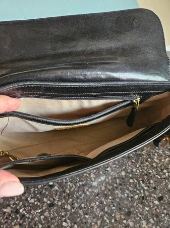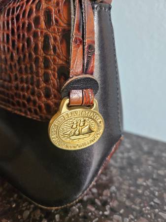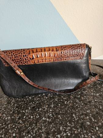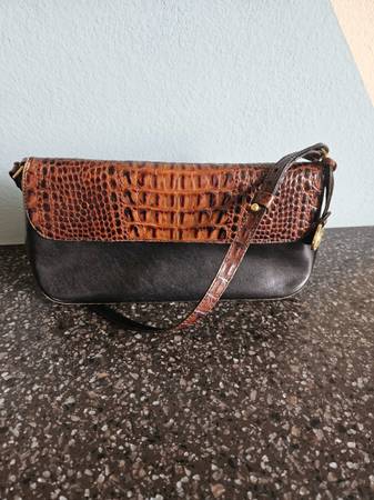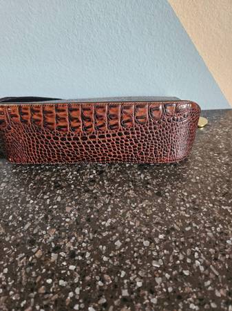 Brown and Black leather. Embossed Crocodile. Perfect size 12" x 5.5" x3.5" Xcellent condition
