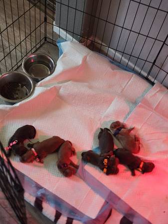 Labradoodle puppies! Mini-medium size 4 girls 2 boys Apricot and dark brown color. The last pictures are the parents Will be ready to go home on December 20th. Please txt for more information.