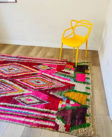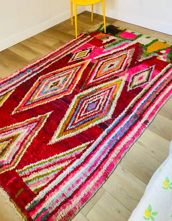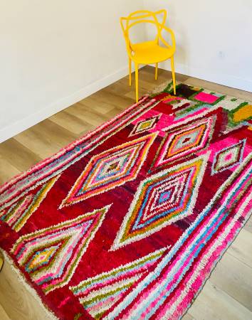 STUNNING !!!! Absolutely stunning. Absolutely vibrant. I loved it like crazy, but downsizing all my rugs and antiques and vintage….. huge sale Moroccan handmade BOUJAAD WOOL RUG GEOMETRIC RED and...
