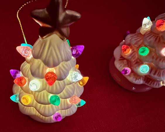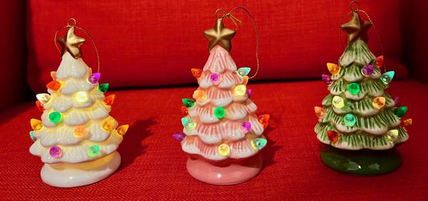 The Lit Ceramic Retro Christmas Tree Christmas Tree Ornament from Wondershop™ is a perfect way to add a little extra twinkle to your tree. This Christmas ornament is shaped like a Christmas tree, complete with a star on top and a speckling of lights all over. The colorful glass bulbs add a fun pop to the Christmas tree, and they even house tiny lights that can be turned on to create a pretty glow. The tree's ceramic construction gives it a retro-inspired feel that'll look right at home with both modern ornaments and heirloom ones.