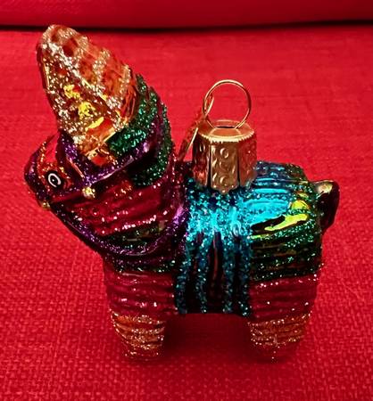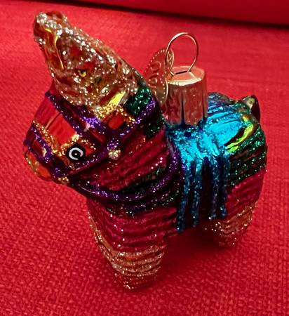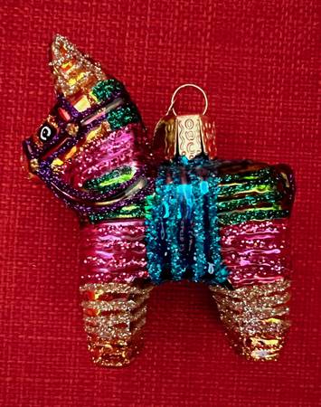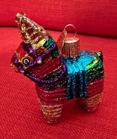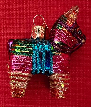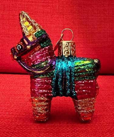THE PINATA IS ASSOCIATED WITH MEXICAN FIESTAS AND FUN. IT ALSO HAS A CHRISTMAS MEANING. THE CANDIES INSIDE THE COLORFUL PAPER FIGUR ARE TEMPTATIONS, THE BLINDFOLDED PERSON STANDS FOR BLIND UNWAVERING FAITH, AND THE STICK SYMBOLIZED GOODNESS. WHEN THE CANDIES ARE RELEASED THEY ARE THE JUST REWARDS OF FAITH AND GOODNESS.