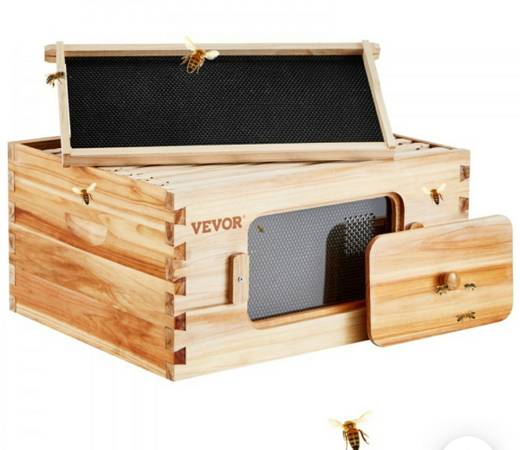 VEVOR Bee Hive Deep Box Starter Kit, 100% Beeswax Coated Natural Cedar Wood, Langstroth Beehive Kit with 10 Frames and Foundations, Transparent Acrylic Bee Windows for Beginners and Pros. As...
