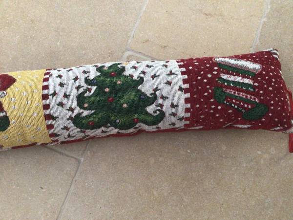 Place this festive Christmas draft blocker along a door or window for added warmth in your home all winter long.