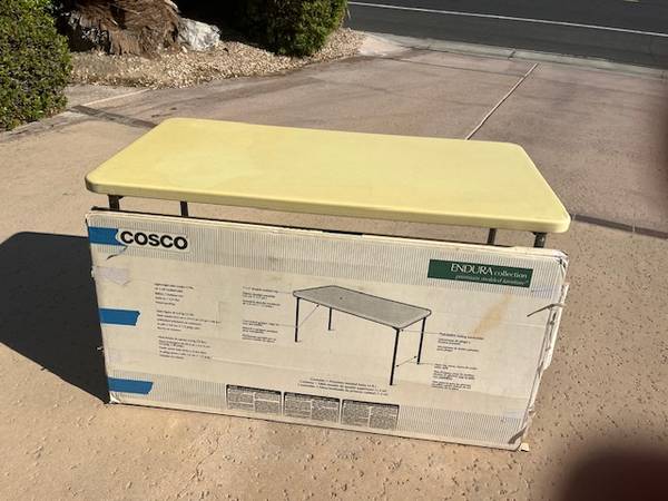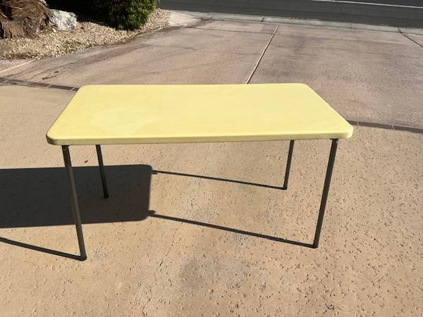 Folding bar table with white plastic top. Very strong sturdy legs