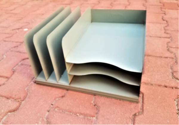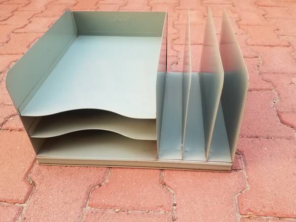 Vintage Office Desk Metal File Organizer Tray light gray or light brown. $35 each. I have other metal vintage office items available. See pictures Please call Marc