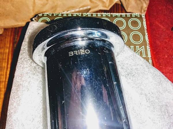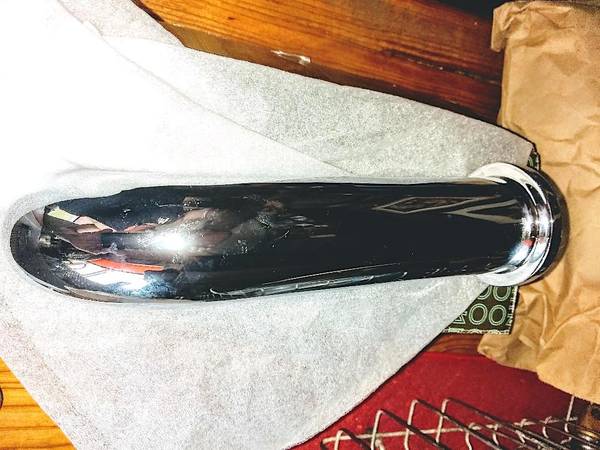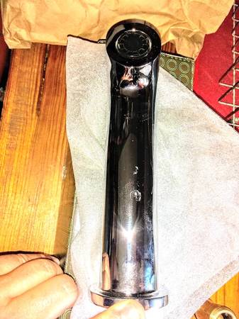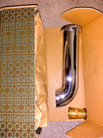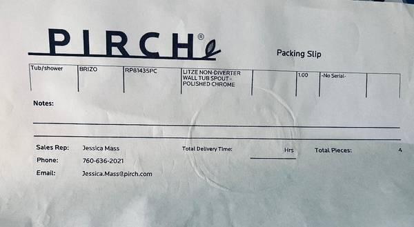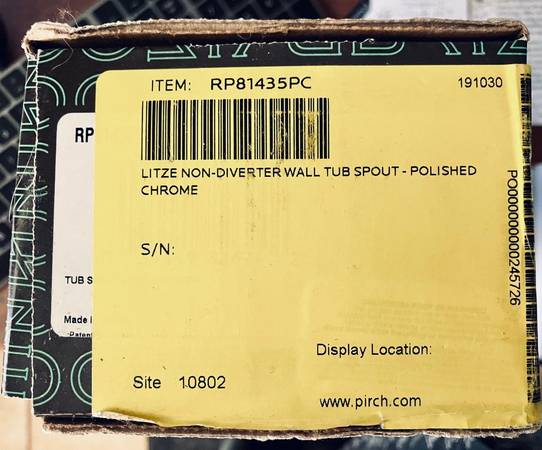 Brizo non-diverter type bathtub spout American-made; NiB; never installed bought at Pirch/Rancho Mirage (see packing slip) mod-industrial vibe; Bauhaus Movement inspired 8 & 7/16s L by 2 &...