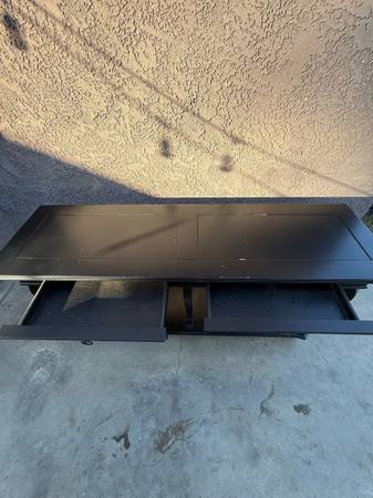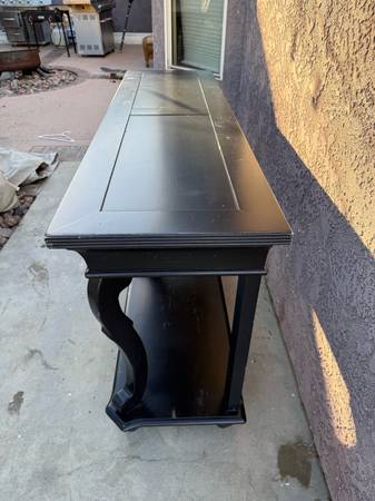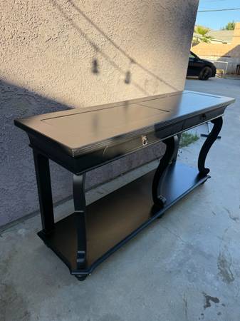 Solid black console table with two drawers and a lower shelf. It’s a stylish and functional piece that works great in an entryway, hallway, or living room.