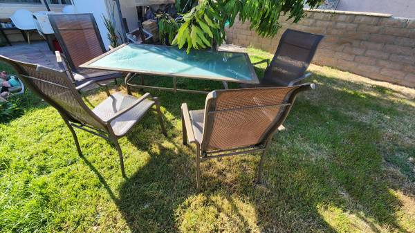 Table is strong solid not damaged, no wear and tear on chairs. Measurements, 66 1/4 length width 38 1/4 Height 27 7/8. Call or text if interested, 760 Six four one 7843. Thanks.