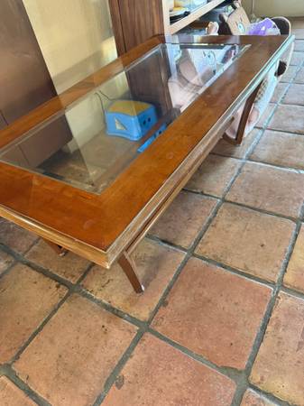 one coffee table with glass top and 2 matching end tables used /fair condition