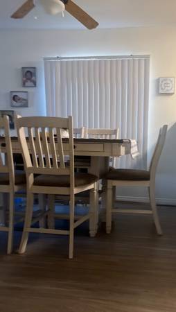 Dining table + 6 dining chairs. bought this at ashley's furniture 4 years ago, in really good condition i really love this table just needs to be cleaned. Selling it because i moved back in to my...