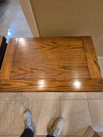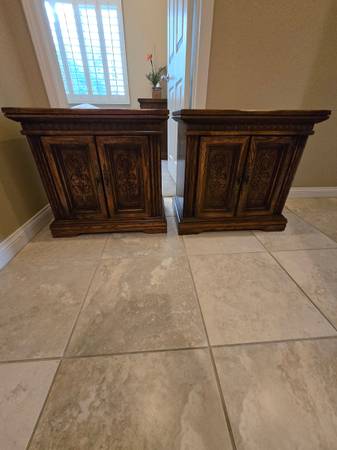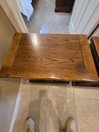 The nightstands could use some light sanding in a few spots on the top. There is a blackened spot on one night stand where someone kept a water glass. Plus there are a few spots where the varnish could be sanded and reapplied.