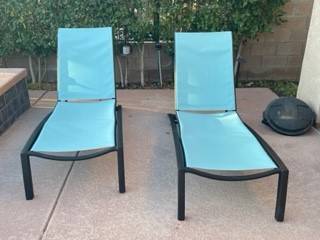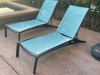Thers chairs have been completely refurbished with new powder coating, all stainless hardware, all new plastic caps, and brand new factory teal covers. Never used and ready for your summer pool parties. Refurbished 4 of these but can only use 2 so getting rid of these extra ones which are stored in my garage.