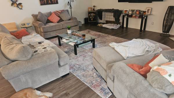 Large chair with large ottoman, full couch, and love seat. 4 years old. Love seat had never been sat on. Couch is well used and the chair is in great shape. Purchased from Mathis Bros. Serious...