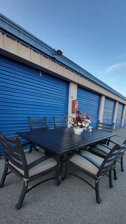Large size table and chairs are in excellent condition, the Sunbrela cushions are like new. The table is 96.5" x 42" x29.5" H The charges are 25" W x 29" D x 38" H, the seat height is 18". The price...