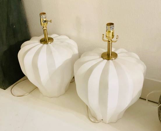 Pair of white HEAVY ceramic lamps w shades. Lamps are brand new.
