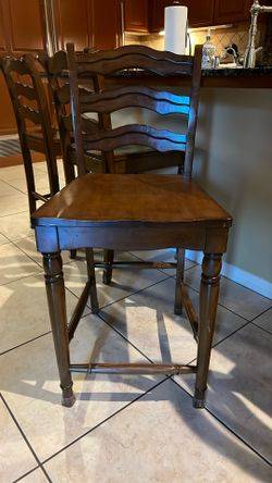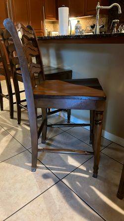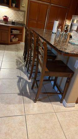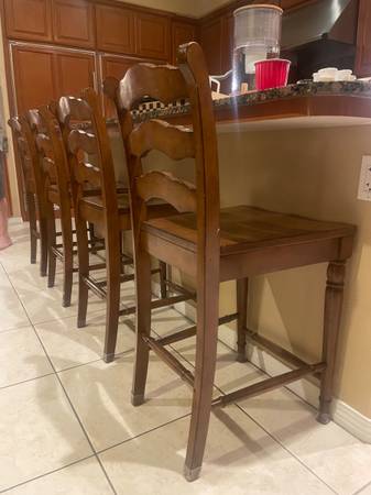 These barstools from Pier 1 are sold as a set of 4. These chairs are very sturdy and have a seat height of 24 inches and fit nicely at a bar height of 36 inches. Pick up only.
