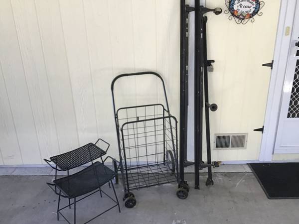 Condition Used - Good 2 Metal Seats/Tables..........$5 each Umbrella Stand ..........$5 Grocery Cart.............$10 Queen Bed Frame .......$10