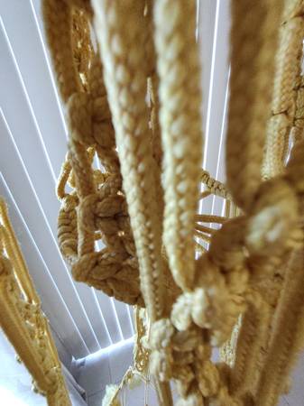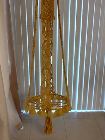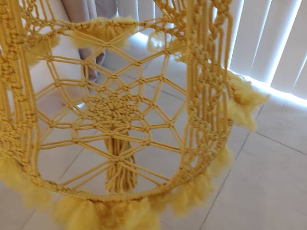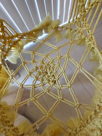 Fantastic 1970s yellow macrame hanging table. Needs the piece of glass. Total length is approximately 72 inches. Has been in a smoke free home Cash only $45