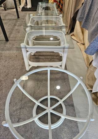 2 Bamboo Coffee Tables Round & Rectangle and 2 Bamboo Side / End Table!