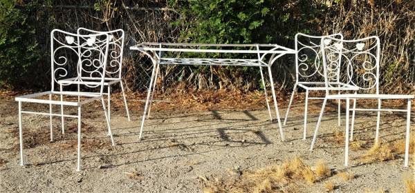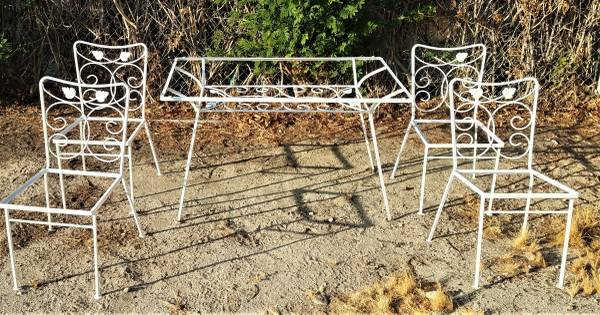 4 feet long 30 inches wide. Glass top is not included. The chair need seats. It will make a great looking patio set. Please call Marc