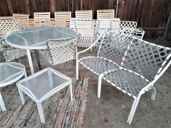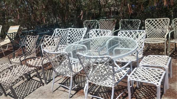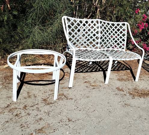 Very hard to find this vintage love seat Brown Jordan. Please see other items that are also for sale in pictures. All items are for sale prices varu. Please call. Marc.