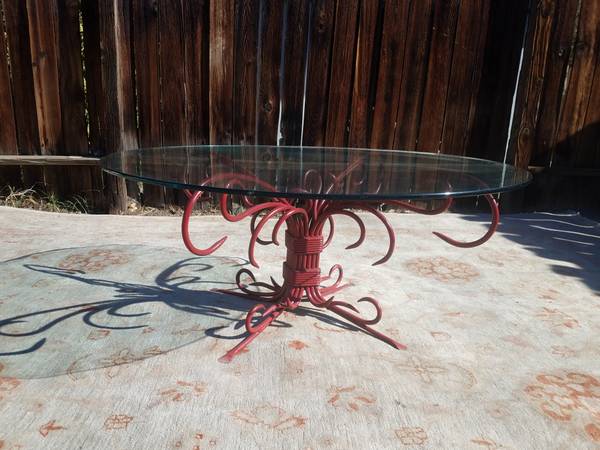 Very unique and creative. Unusual modern designed heavy iron. . 18" high........42" diameter Please call. Marc.