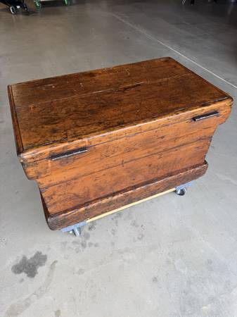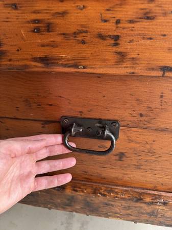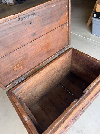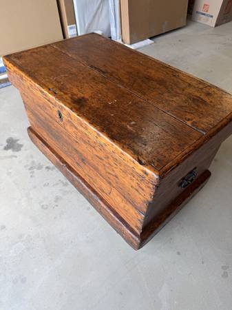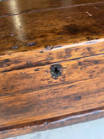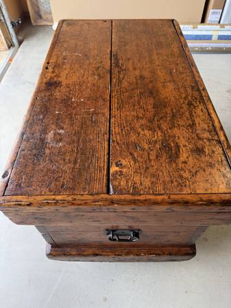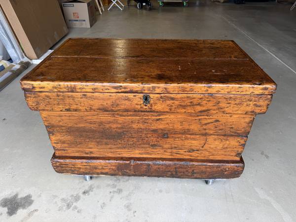 This is an authentic solid-wood Southwestern trunk, crafted circa 1900–1940, featuring thick hardwood planks, a warm time-worn finish, and simple iron hardware. Sourced from a high-end estate with roots in the American Southwest, this piece embodies the spirit of territorial, ranch, and mission-era craftsmanship.