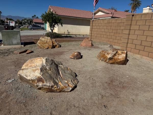 3 Very large boulders in Apache sunset and 1 Arizona sunset, delivered locally. Must have accessible area to offload with dump trailer.