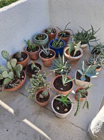 Some recently repotted with fresh cactus soil and all in excellent health. Sizes range along with the price $10 - $15. Terracotta and glazed pot.