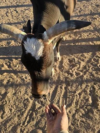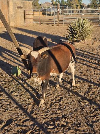 Nice red bull, proven breeder and great with the lady cows. He is shy around people but will eat treats from your hand. Located in Pioneertown 92268