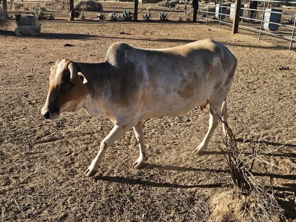 She is a sweet cow and a good mom. Will make an excellent breeder. She is registered. She has been running with a mini bull. Call or text. Located in Pioneertown California 92268