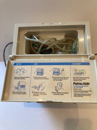 PULMOAIDE Compressor/ Nebulizer. Model 5650D In Great Pre-Owned Used Condition. Includes Used Tubing, mask & nebulizer. Missing Intake Filter. $50 Cash & Local Pickup in Cathedral City.