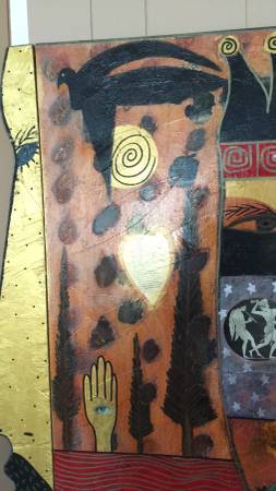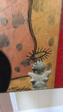 This is an original mixed media piece by Medford titled “ You are but a Symbol”. It’s quite large, measuring 4’ X 4’. Striking in desert colors; appropriate in any decor. Originally purchased from the artist at Sherwood Gallery in Laguna Beach. Real conversation piece. You’re gonna love it!
