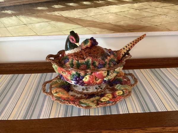 PRISTINE CONDITION PRICED FAR BELOW CURRENT ONLINE PRICES APPROXIMATELY 19 INCHES ACROSS ALSO AVAILABLE, MATCHING HAND PAINTED COLLECTABLE MEAT PLATTER
