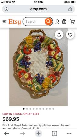 BEAUTIFUL FITZ & FLOYD HAND PAINTED PLATTER - household items - by...