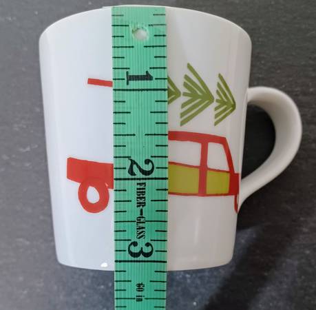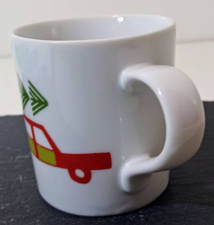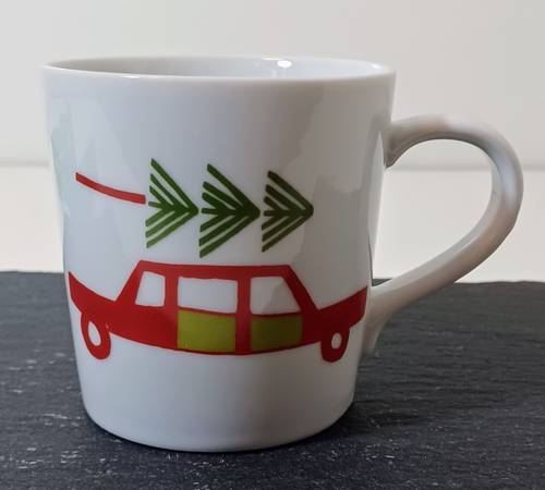 Crate and Barrel holiday mug by Julia Rothman in excellent condition. • Mid-Mod Christmas tree on car • White with red and green • 6 oz If you would like to see this mug, message us. Thanks for...
