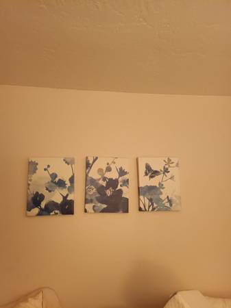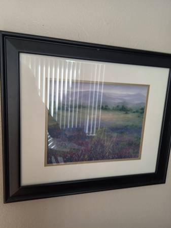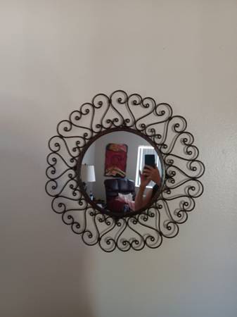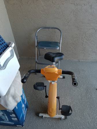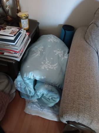 Desk, computer monitor and printer, lamps, TV and TV stand and pictures. Appliances: microwave, toaster. Dishes and pots and pans. Kitchen utensils. Exercise bike. Bed spreads and blankets. Etc and...