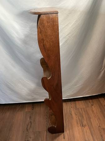 Solid wood mirrored wall hanging bookcase. Item is a wall hanging bookcase with mirrors. Mahogany colored wood with a dark blue green wash accent. Heavy duty handmade in India solid wood. Item is...
